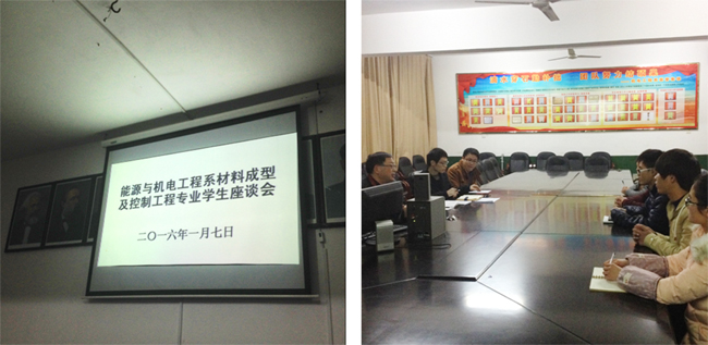 1月7日晚,材料成型及控制工程教研室在若谷楼205会议室举行教学检查学生座谈会。系主任谢常清、材料成型及控制工程教研室主任谭峰亮、教师汪力、侯志伟和2015级材控1班周圣雄等5名学生代表参加了本次座谈会。