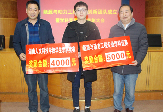 2017年12月28日,能源与机电工程学院能源与动力工程专业学生创新团队成立暨学科竞赛总结表彰大会在养根楼会议厅隆重召开。学校教务处羊四清处长、创新创业学院彭晓华院长、能源与机电工程学院领导、能源与动力工程专业教师及近300名学生参加了会议,大会由能动党支部书记林道光老师主持。