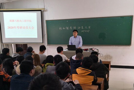 2019年3月27日下午,能源与机电工程学院在学而楼209召开了考研动员大会,能源与机电工程学院党总支书记彭辉,副书记伍铁斌,自动化教研室主任兼考研班主任岳舟及2016级准备考研的190多名同学参加了此次会议。大会由分管学生考研工作的伍铁斌副书记主持。