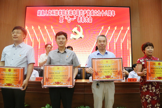 7月1日上午,beat365中文官方网站庆祝中国共产党成立98周年暨“七一”表彰大会在匠成楼报告厅举行。党委书记郭军深情回顾了中国共产党98年来所走过的光辉历程,客观总结了beat365从无到有、从小到大、从弱到强的发展之路,明确要求各基层党组织发挥好战斗堡垒作用和党员先锋模范作用,为学校事业发展服务。党委副书记刘铁铭对beat365获2018年全省高校党建工作样板支部、教师党支部书记“双带头人”标兵、党务工作示范岗、青年教工党员示范岗、百佳大学生党员的组织和个人以及学校先进基层党组织、优秀党务工作者进行了表彰奖励。能源与机电工程学院党总支、教工第二党支部及学生第二党支部2018年度党建工作考核评分均为本组第一,被授予“先进基层党组织”、“先进党支部”荣誉称号;我院高文凌、林道光、岳舟、蒋博文、陈英亮、汤回、谢叶恒获得“优秀共产党员”荣誉称号;肖毅获得“优秀党务工作者”荣誉称号。