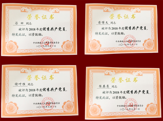 2018年度,能源与机电工程学院党总支以习近平新时代中国特色社会主义思想为指导,不忘初心,牢记使命,以党支部“五化”建设为标准,认真履行了党总支的主体责任和个人的”一岗双责”,确保了学院的平安和稳定,并取得了一系列可喜成绩。我院党总支被学校党委推荐参评湖南省教育工委党建标杆院系,伍铁斌被评为湖南省“双带头人”标兵,李艳被评为湖南省青年教师党员示范岗。学院团总支荣获湖南省五四红旗团总支。
