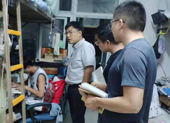 为全面了解学生到校住宿情况,落实平安校园建设,营造良好的学习生活环境,帮助学生答疑解惑,2019年9月1日晚,学院党总支书记彭辉、副书记伍铁斌带队,全体辅导员、班主任老师以及学生会干部参与,对我院学生宿舍进行了巡查和慰问。