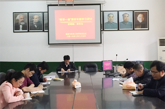 2016年10月25日,能源与机电工程学院党总支在若谷楼205会议室开展了“两学一做”第四专题“讲奉献,有作为”学习研讨。学院领导班子成员、党总支委员、院中层以上领导干部和各党支部书记参加了本次研讨学习,党总支书记谭甲凡围绕“讲奉献,有作为”主题进行了学习,主要讲了三点:即“讲奉献、有作为要有公而忘私的追求;讲奉献、有作为要有敢于担当的精神;讲奉献、有作为要有求真务实的作风”。组织大家学习了高校教师的典范---“太行新愚公”李保国的先进事迹。联系实际对院里和本人在“讲奉献,有作为”上存在的问题,大家围绕主题进行了讨论。传达了上级党组织“关于进一步做好党费收缴、使用和管理工作的通知”精神,对各党支部的第四专题的学习研讨和各党支部组织所在教研室的政治学习及近期党建工作的相关工作作了安排和部署。(曾稀供稿)