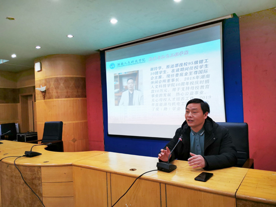 谢玲华先生为beat365优秀校友,在读期间曾任校学生会主席,现任娄底金至尊国际休闲会所董事长,2018年beat365中文官方网站40周年校庆时捐款10万元,用于支持母校教育事业的发展;热心公益事业,关心母校人才培养工作,2019年在能源与机电工程学院设立了奖(助)学金,每年出资四千元,用于奖励2名品学兼优的家庭贫困学生,旨在激励和引领能机学子刻苦学习,立志成才,为学校争取荣誉,为民族兴旺、国家强盛做出积极贡献。