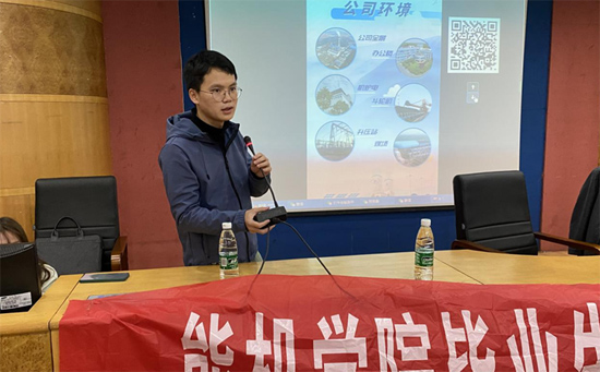 | 学院2020届毕业生、华电长沙分公司燃料生产部贺肃秦介绍单位情况 |