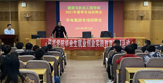 中国华电集团有限公司是国有独资发电企业,属于国务院国资委监管的特大型中央企业。华电湖南分公司下辖7家发电企业,其中控股火电企业3家,管理新能源企业共4家。2020年学院共计有9名毕业生入职华电湖南分公司,公司员工贺肃秦、姚劲、曹威是学校2016级能源与动力工程专业的优秀校友,他们积极推动该企业回到母校开展招聘,指导就业工作。