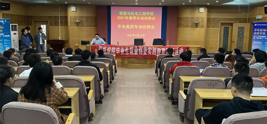 3月12日,华电集团长沙分公司人力资源部培训主管谭中兴、常德分公司人力资源部培训主管张常棣、岳阳分公司生产准备部主任焦雄飞及3位校友员工一行,在养根楼报告厅举行华电集团专场招聘会。学院党总支副书记伍铁斌、副院长刘海力、班主任、就业专干及180余名毕业生参加了招聘会。
