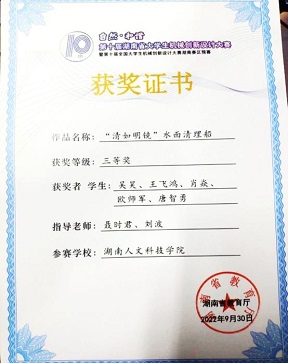 2022年获第十届湖南省机械创新设计大赛“三等奖”