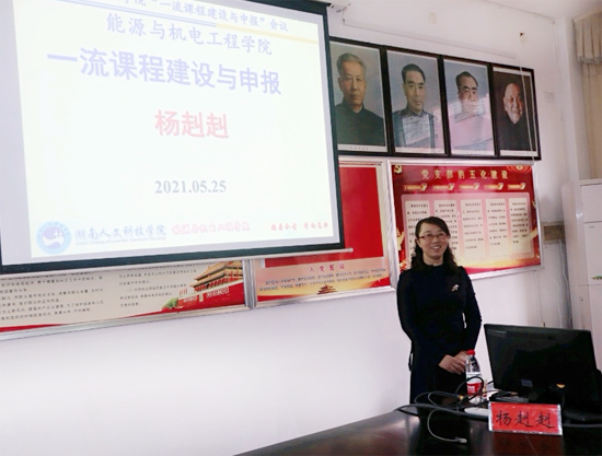 刘海力介绍了学校一流课程申报的相关政策,并分享了湖南省一流本科课程《流体力学》的建设经验;希望老师们对标一流课程的申报条件,建设好课程。
