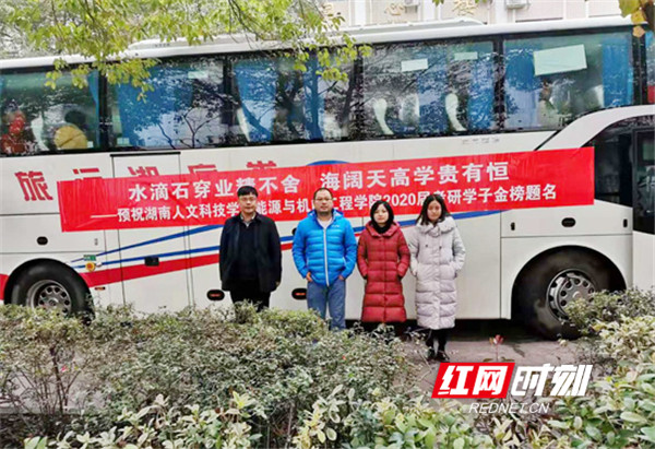 同时,在备考期间,给每位考研学生安排了一位辅导员作为心理疏导员,及时与之线上线下交流,为其提供必要的心理疏导和精神支持,减少了弃考生的数量,坚定了他们的考研信心。2020年全国研究生考试两天中,学院为参加考试的107名同学提供了两辆送考专车,并在车上配备热水、姜茶、暖宝宝和食品,院领导、辅导员及考研班主任随车赴考点为学子加油。今年考研学子的复试阶段,正处于新冠肺炎疫情期间,学院多名教师和全体辅导员通过线上线下对考研学生提供复试答疑指导,及时提供志愿调剂等信息,帮助学生完成线上政审和相关材料报送。2016级材料成型及控制工程专业周婷同学报考湖南大学,复试落选后,班主任吴吉文老师及时联系了调剂的学校,经过师生的共同努力,最后顺利被上海大学录取。