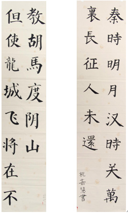 毫泼墨,各展所长;作品中有刚正不阿的楷书,有古色古香的隶书,有飘逸潇洒的行书;一幅幅颇具神韵的书法作品展现出对中国传统文化的