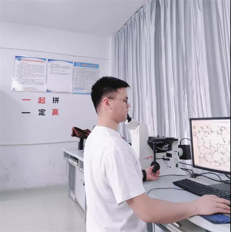 (谭雄辉在实验室观察金相组织)
