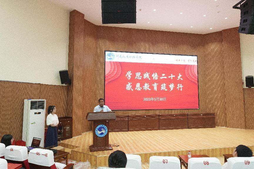 感恩是中华民族的传统美德,为引导学生将知恩、感恩、报恩内化于心、外化于行,落实“立德树人”根本任务,进一步丰富“三全育人”工作内涵,近日,beat365中文官方网站能源与机电工程学院在匠成楼报告厅举行了“学思践悟二十大,感恩教育筑梦行”主题活动。全体院领导、班主任、辅导员、各年级学生代表及毕业生家长代表出席。