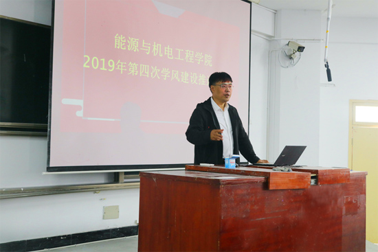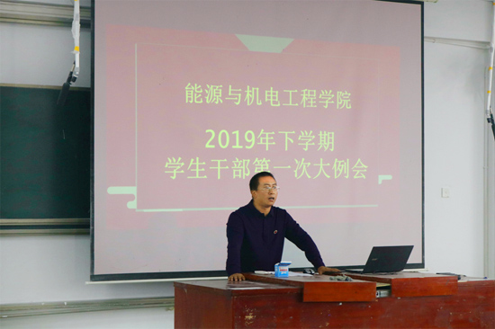 2019年10月9日中午,能源与机电工程学院在致远楼219召开第四次学风建设推进会暨文明养成、审核评估、新任学生干部培训大会。学院党总支书记彭辉、党总支副书记伍铁斌、全体辅导员以及学生会全体干部、各班班长、团支书、学习委员参加了本次会议。