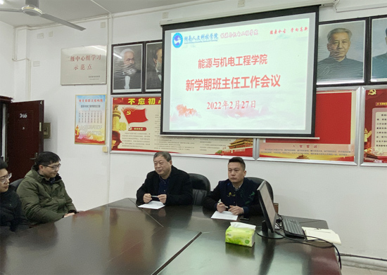 227日晚19:30,能源与机电工程学院于同德楼306召开2022年新学期班主任工作会议,学院党总支书记谢常清、党总支副书记石海,全体班主任及辅导员参加会议。