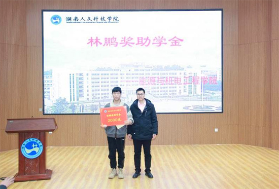 我院是湖南省三全育人综合改革试点院系,构建了国家资助、学校奖助和校友、教师、爱心人士捐助的“三助一体”精准帮扶体系。校友奖助学金的设立是实践三全育人工作的重要环节,是优秀校友爱校情怀的生动体现,激励着每一位能机学子奋发图强,立志成为有理想、有追求、有担当、有作为、有品质、有修养的新时代大学生。(图/文 戴建利)