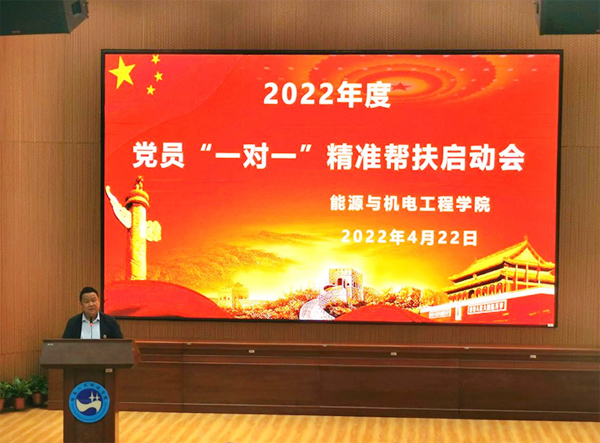 4月22日下午,为落实立德树人根本任务,加强学风建设,提高学生创新创业水平,充分发挥育人工作实效,能源与机电工程学院在匠成楼报告厅召开党员“一对一”精准帮扶启动会。此次活动由副书记石海主持,全体院领导、教研室主任、辅导员、班主任以及所有学业困难学生参加。