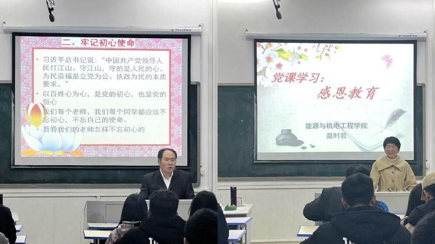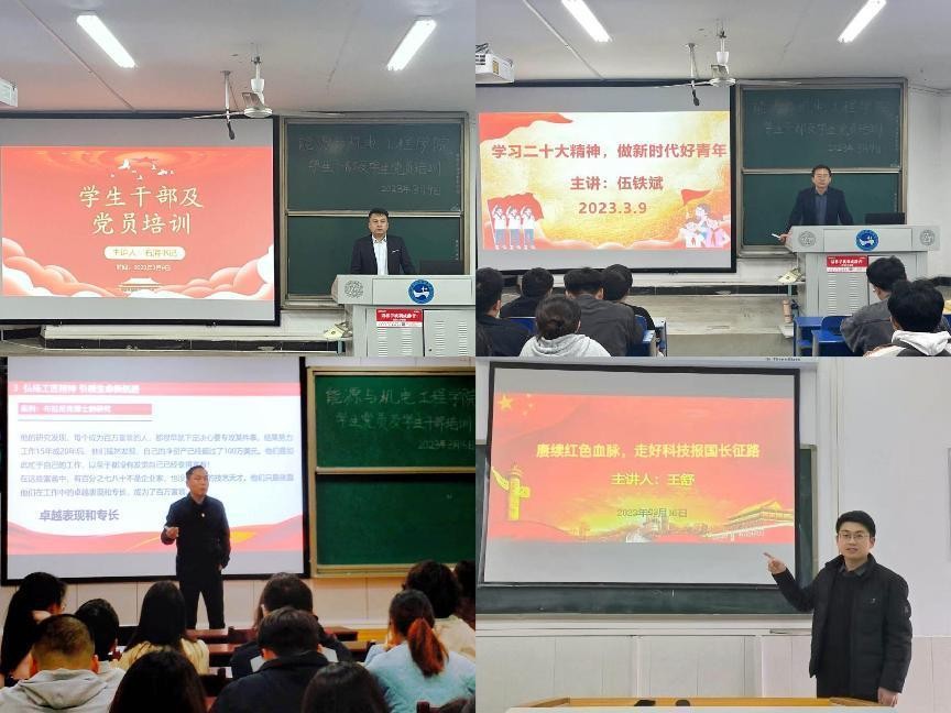 立足育人特色讲党课,促进党课和教育教学的深度融合。积极探索“党建+专业”党支部标准化规范化建设的创新模式,组织师生党支部联合打造特色党建品牌。3月,学院领导班子成员依次开展了以党建工作、学生管理、专业学习、工匠精神、科技创新等为主题的系列党课,贴近学生、服务学生,激励当代大学生以党的二十大精神为根基、以主人翁的姿态坚定理想信念,夯实专业基础,弘扬工匠精神,培育创新能力,充分调动学生自我教育、自我管理、自我服务、自我监督的内在积极性,自觉成长为有理想、敢担当、能吃苦、肯奋斗的时代新人。湖南省优秀共产党员杨正德,娄底市优秀党务工作者聂时君分别以“牢记初心使命”、“感恩”为题,教导学生“鸟有反哺之义,羊有跪乳之恩”。他们从最朴素、最真实的角度出发,以事见人讲好党员故事,以小见大彰显榜样力量,用学生喜爱的、有温度的方式上好特色党课。