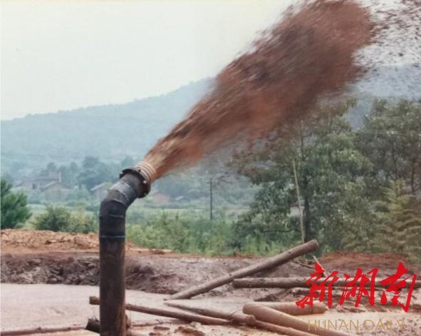 (胡东在钻孔水力采矿现场。)