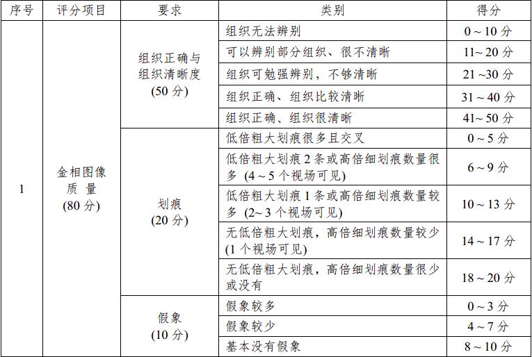 现场操作扣分标准 (按预磨、抛光及腐蚀、显微镜观察三个环节分别评定;每一环节出现以下每4 类情况只扣分一次):