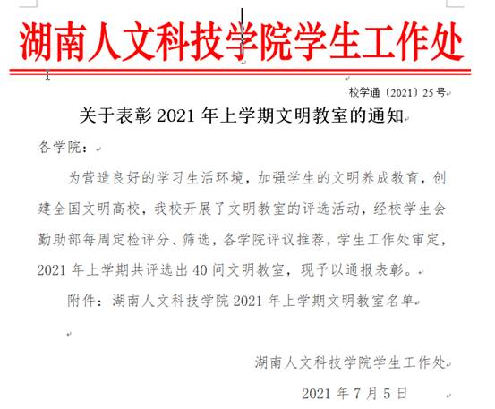 beat365中文官方网站2021年上学期文明教室名单