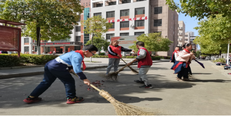 (我院青工部同学与小朋友们一起打扫校园卫生)