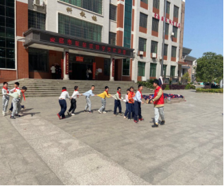 (我院青工部同学带领小朋友们一起进行室外活动)
