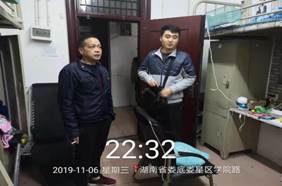 随后,领导和老师走到寝室,检查同学们是否都按时归寝,同时对寝室内务和违规电器做了全方位检查。体育学院的同学们看到老师走进寝室后,纷纷放下手头的事,热情的跟领导老师打招呼。大检查过程中,李玲军副处长表扬同学们寝室内务做的不错,鼓励大家继续保持,要以最好的状态迎接综治检查和审核评估工作,并对一些不足之处提出了整改意见。他提到:同学们的安全与健康是我们教育工作的重中之重,希望同学们能严格遵守校规校纪,更好的配合学校完成本学期审核评估工作。与此同时,领导和老师也对同学们的日常生活与学习给予了慰问与关怀。