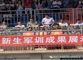军训汇演盛大而隆重,娄底军分区战备建设处处长彭文上校,党委副书记、校长刘和云等领导对各方阵进行巡视,亲切的向同学们问好。会操时各连排成整齐的方阵迈着整齐的步伐走过主席台接受检阅。体育学院的队伍精神抖擞、军容整齐、豪情万丈充分展示了体育学院的朝气蓬勃、自信刚强,赢得全校师生的热烈掌声