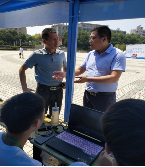 党总支书记蒋毅和党总支副书记谢嘉商讨新生入学相关问题