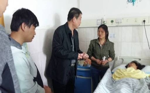 听闻此消息,班主任赵老师立即号召班上所有同学为向岳飞家里进行募捐,并带头募捐1000元,奉献一片爱心,得到所有同学的积极响应,全班共计捐款5700元。4月27日,赵老师又亲自开车带领班上几位同学来到医院对向岳飞及其家人进行慰问,并把所有募捐的资金6700元送到向岳飞手上。