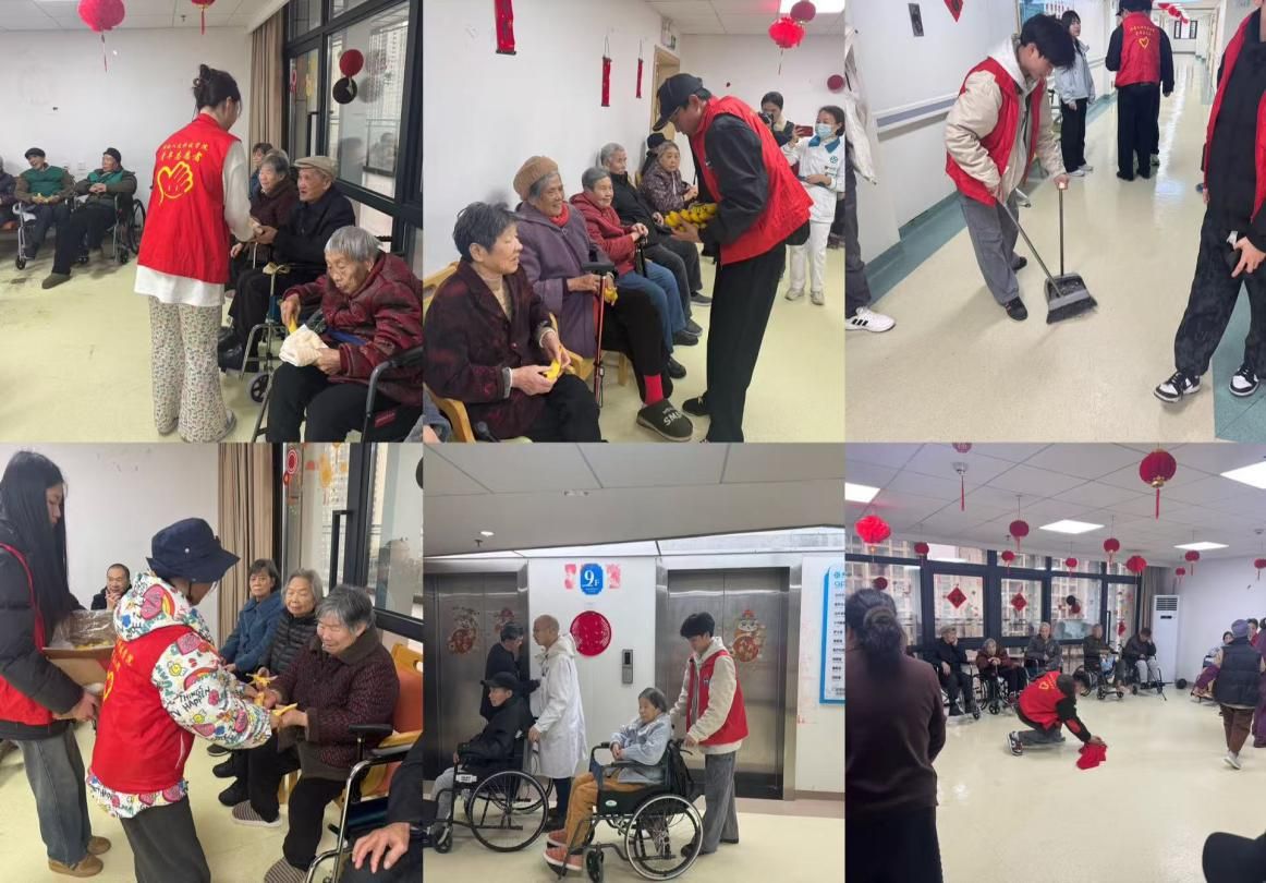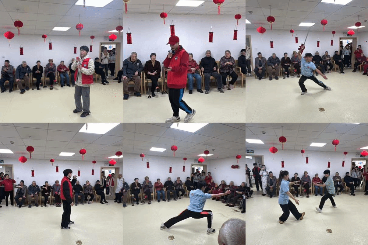 活动中,志愿者们为老人们献唱歌曲活跃气氛、并结合专业带来了拳术、刀术、太极拳等文艺表演。节目形式丰富、内容暖心,歌声深情悠扬,武术表演刚劲有力,太极拳舒缓养生,充分展现了体育学子的青春风采与专业素养,赢得现场老人们的热烈掌声。表演之余,志愿者们主动为养老院打扫卫生、整理内务,清洁公共活动区域,以实际行动营造整洁舒适的居住环境;同时与老人亲切交流,悉心询问身体状况和生活情况,用陪伴、劳动与关怀为老人们送去温暖。
