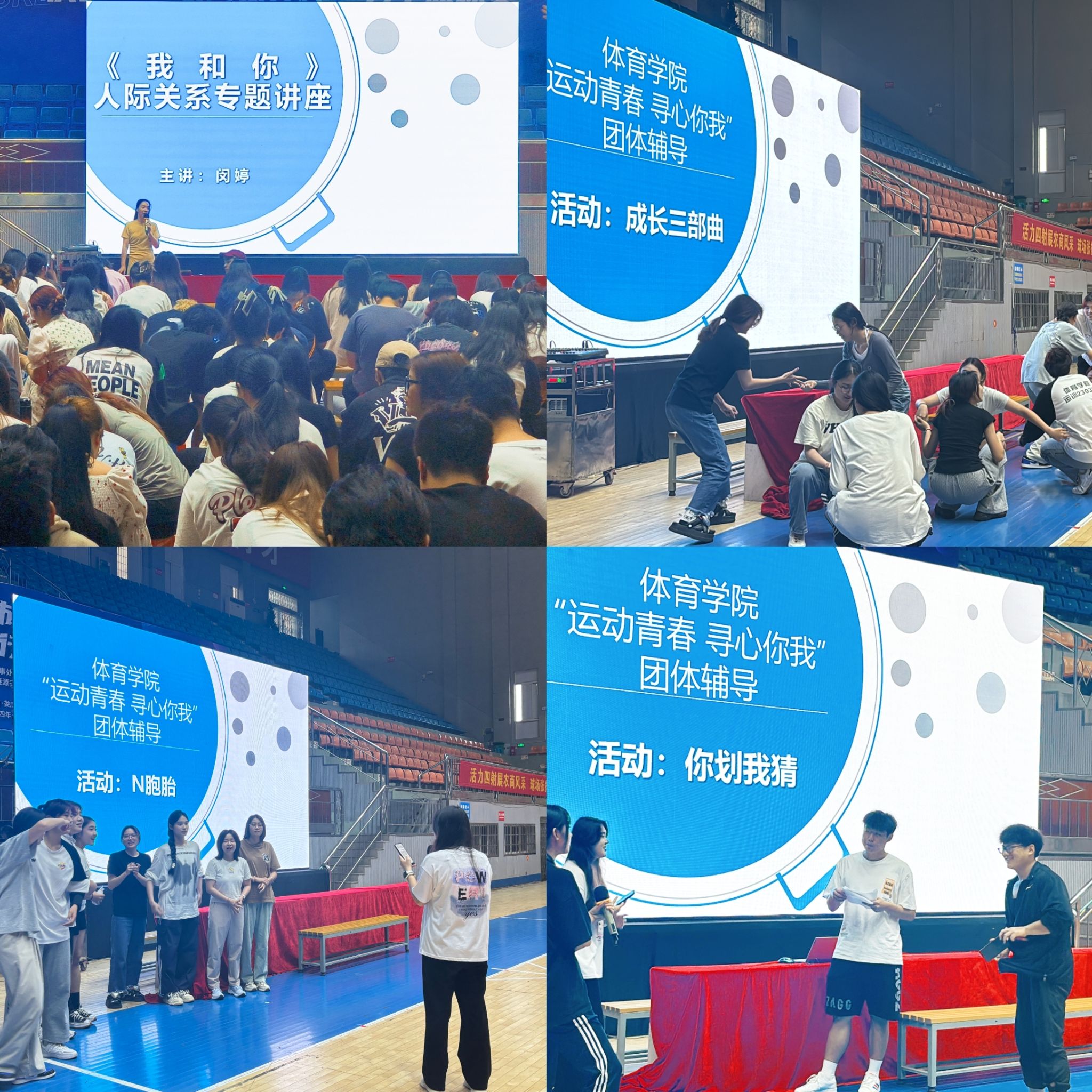 为加强学生对心理健康的认识,提高学生自我认知与人际交往能力。5月21日下午,体育学院在体育馆举行了“运动青春 寻心你我”心理健康教育活动。旨在帮助学生更好地认识自我,积极地融入集体,学会人际交往技巧,学会与他人协同合作,营造积极向上的校园氛围。体育学院运动训练专业大一至大三学生参加活动。
