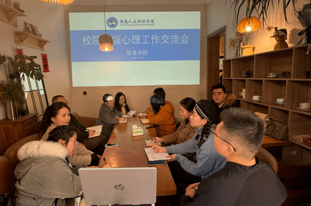 2024年12月25日下午,体育学院携手校心理中心共同召开了校院两级心理工作交流会。校心理健康教育与咨询中心主任聂恒、全体专职心理咨询师、体育学院党总支副书记肖毅及全体辅导员参会,会议由肖毅主持。