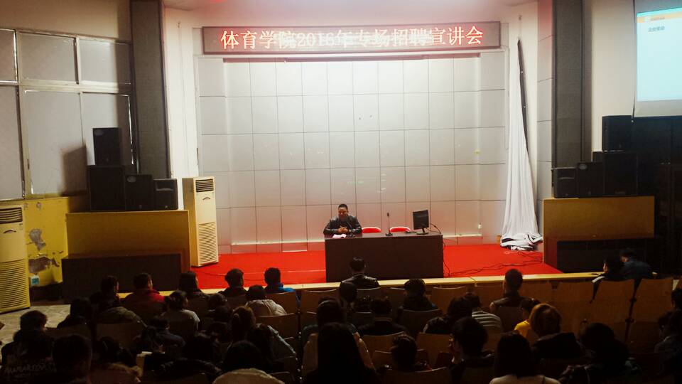 12月10日上午10:00在匠成楼举办体育学院2017届毕业生专场招聘宣讲会。党总支书记蒋毅、副书记谢嘉,招生就业专干出席了本次宣讲会。参加宣讲会的单位有沈阳宏远体育产业有限公司、惠州健儿美健身美容有限公司、邵阳腾翼学校等四家招聘单位。