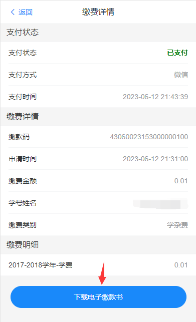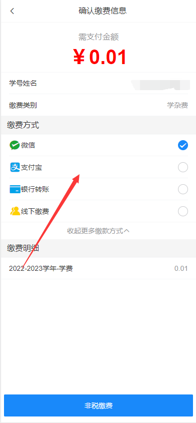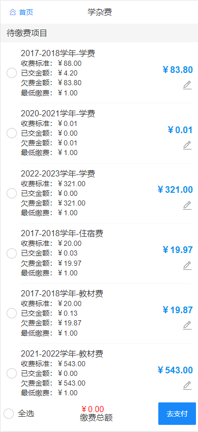 以学杂费为例,点击学杂费入口,进入学杂费缴费页面。