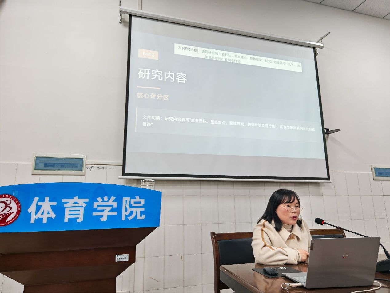刘红华博士在上一次讲座系统讲解选题策略的基础上,本次聚焦于“申报书撰写的破题与立意”,结合体育学学科特点与国家级项目评审要求,深入剖析了申报书撰写中的关键环节与常见误区。她指出,破题是申报的灵魂,立意是论证的骨架,二者共同决定了申报书的学术高度与竞争力。本次指导会内容具体、针对性强,尤其对破题与立意的讲解直击撰写痛点,为后续申报书修改指明了方向。大家将以更严谨的态度和更科学的方法,扎实推进申报工作,助力学院科研水平不断提升。(图文:戴江洪,一审:罗丹玲,二审:董植寿,三审:曾黎)