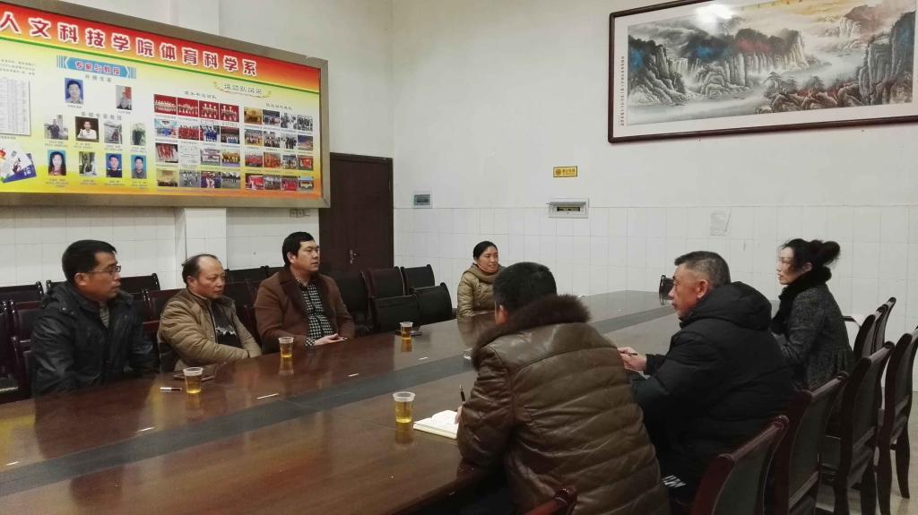 2016年2月25日下午,娄底职业技术学院公共课教学部付鹏主任一行到beat365体育学院进行交流访问,重点交流了体育场馆的建设、场了器材的管理与维护等事宜,学校基建处领导及我院刘玉江院长、段健芝副院长热情接待并就相关事宜做了深入的交流与探讨。