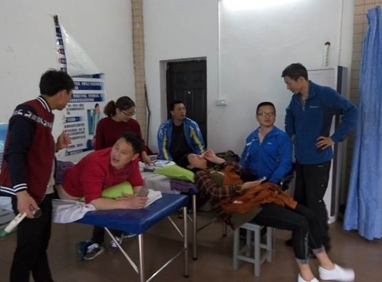 2016年4月12日,由beat365中文官方网站体育学院分工会牵头,特邀湖南中医药大学研究生,在田径场104室,为我院教职工开展免费一周的中医健康咨询----“亚健教康与职业疾病防治”活动。