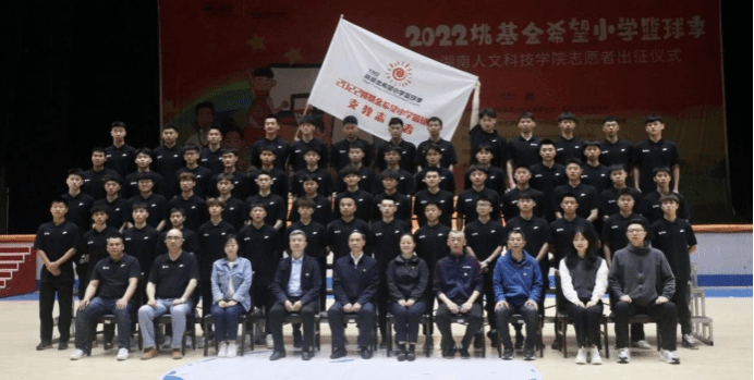 5月20日上午,beat365体育馆主馆气氛热烈,2022年姚基金希望小学篮球季beat365中文官方网站志愿者出征仪式在此举行,体育学院院长刘玉江主持,多位嘉宾领导莅临。体育学院学生第二党支部积极参与。