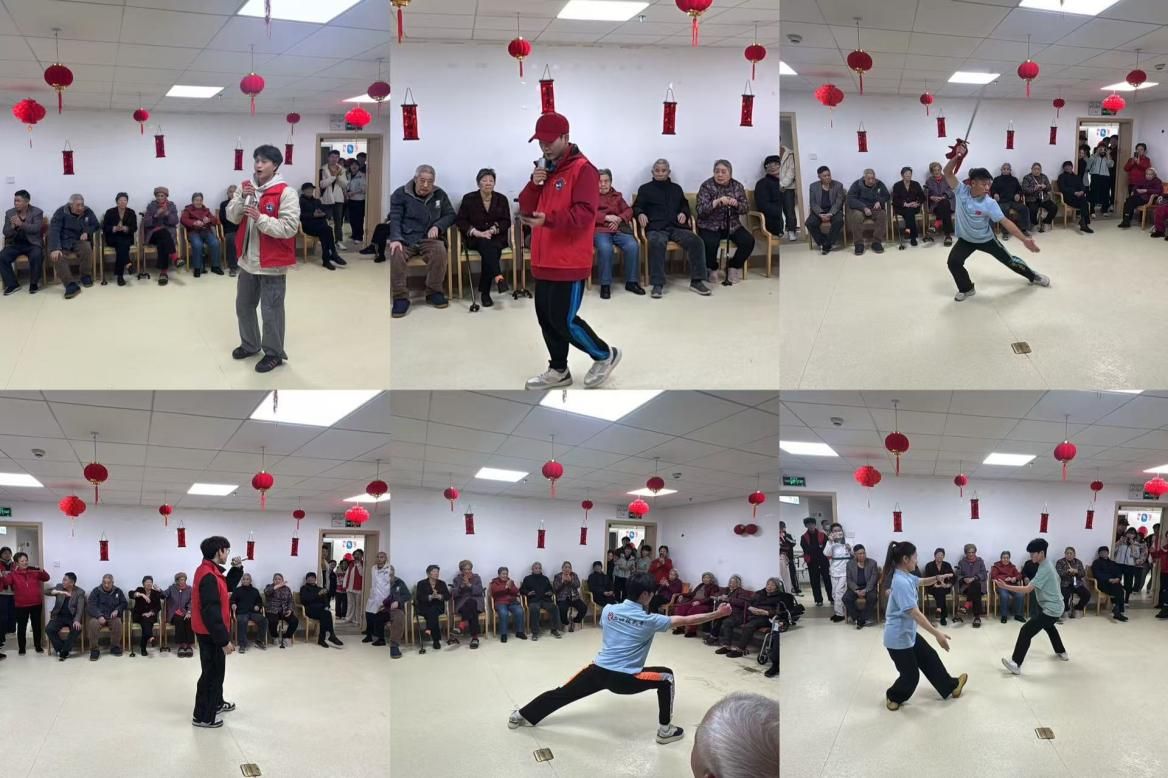 活动现场,党支部成员以饱满的精神状态亮相,精心编排的武术节目轮番上演,尽显武术精神与党员风采。此次活动是体育学院学生第二党支部深化党建特色品牌建设的生动实践。以武术为纽带,将党建工作与志愿服务、文化传承相结合,既让老人们感受到了来自青年学子的关怀与温暖,丰富了晚年精神文化生活;也为支部党员提供了践行初心使命的实践平台。参与活动的学生党员刘振长表示,将以此次活动为契机,继续传承和弘扬中华优秀传统武术文化,牢记党员身份,主动担当作为,以实际行动传递党建正能量,让武术特色在志愿服务中绽放新光彩。