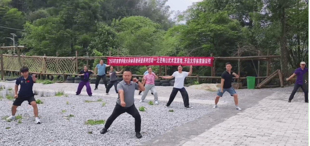 本次活动历时两天,体育学院大学体育教研室全体教师走进梅山武术的发源地新化县,与当地武术大师亲密交流,学习梅山武术的基本动作、套路和精神内涵,深入了解其悠久的历史、传承现状和独特的发展特点。通过实地调研,教师们切身感受到梅山武术作为湖南本土武术的深厚文化底蕴及其对地方社会的影响力。