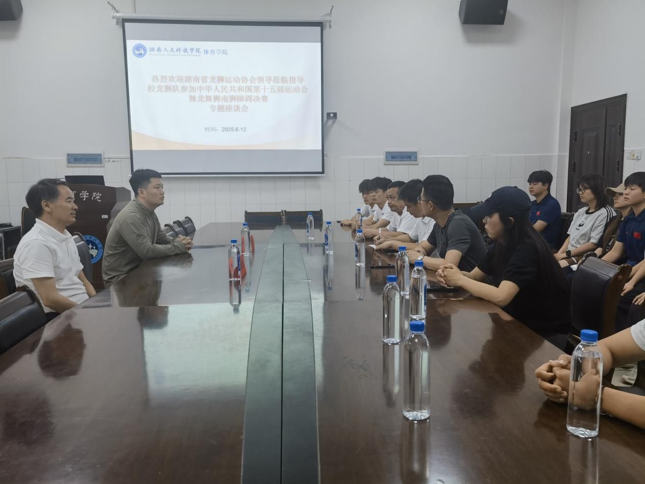 6月12日,湖南省龙狮运动协会顾问张继生教授、副秘书长江芳林博士率专家团队莅临我院,就龙狮队备战第十五届全国运动会工作展开专项指导。体育学院副院长董植寿主持会议,龙狮团杨志华、梁正军、谢春秋等教师代表全程参与,共同为龙狮项目全运征程谋篇布局。