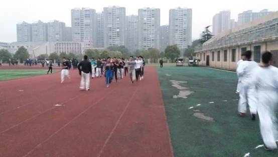 早训第一天,全体学院领导、辅导员和班主任到达田径场组织学生训练,学生参训率达99%。