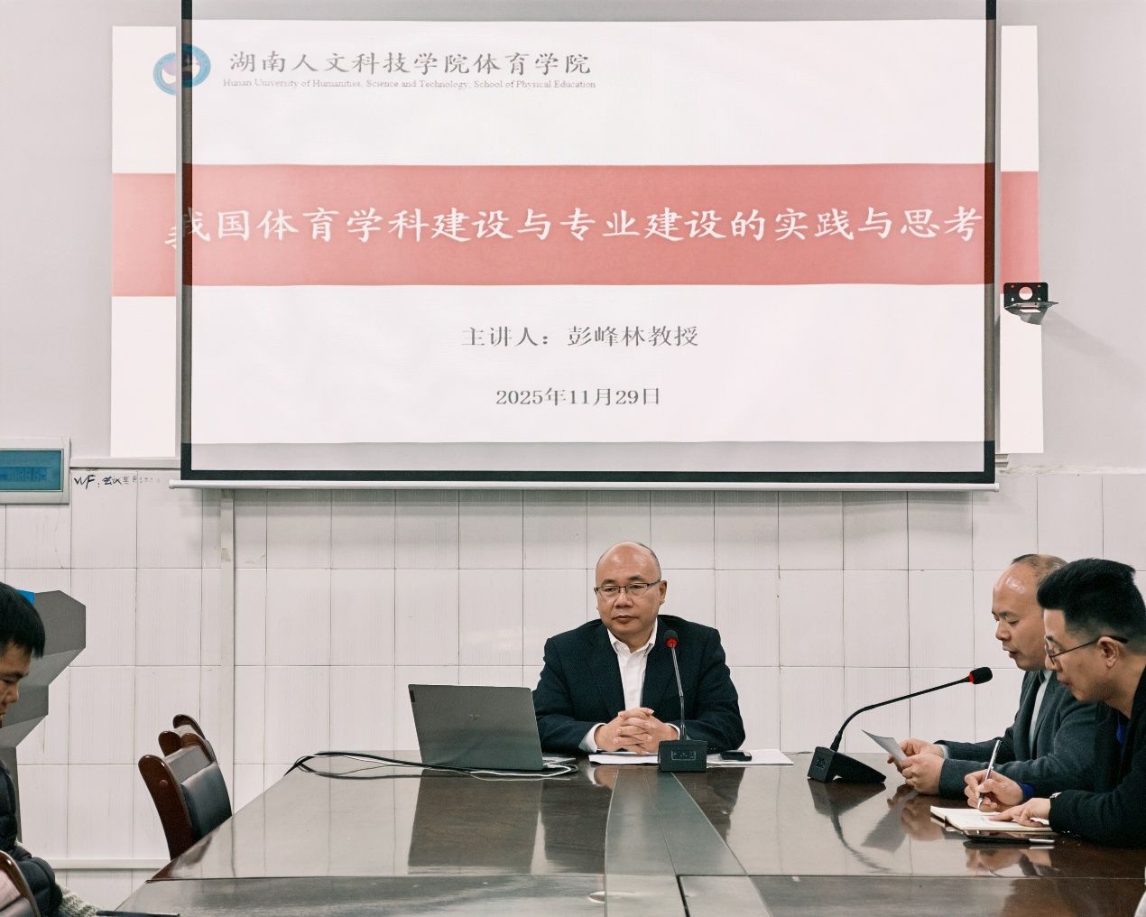 2025年11月29日,广西体育高等专科学校校长、二级教授、博士生导师彭峰林教授应beat365邀请,莅临体育学院开展了一场题为《我国体育学科建设与专业建设的实践与思考》的学术讲座。此次讲座由体育学院院长周惠新主持。彭峰林教授作为体育学科领域的知名专家,从战略定位、历史脉络、实践经验、问题反思以及未来展望等多个维度,对我国体育学科与专业建设的发展路径和时代使命进行了系统梳理与深入阐释。