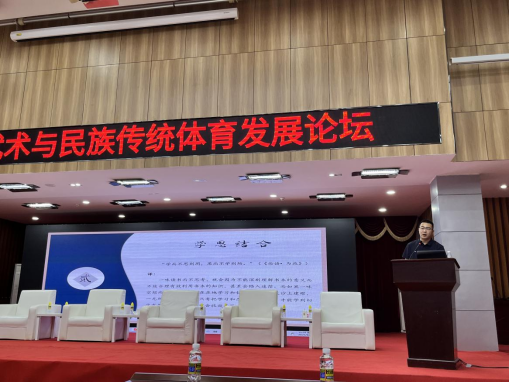 据悉,本届武术节聚集了国内19个省市和中国香港、中国澳门地区,及新加坡、巴基斯坦等国家的武术运动员、裁判员、权威专家等1200人参加此次活动,并举办了海南省武术与民族传统体育发展论坛,我院体育艺术教研室主任董植寿担任了本次会议的主持人。大会邀请了国内数位知名武术专家展示最新研究成果,分析了新时代背景下武术发展现状,共同探讨了武术传承与发展。我院民传教研室徐彬博士在大会上做了专题报告。