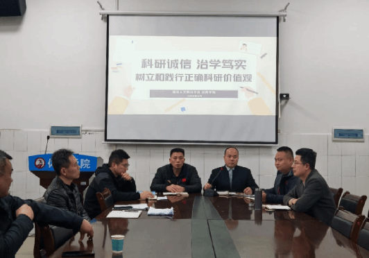 2026年3月24日,体育学院全体教职工在体育馆会议室,召开“科研诚信 治学笃实”教育学习活动。本次活动旨在持续加强科研诚信建设,严明学术纪律,防范学术不端行为,着力营造风清气正的科研生态,引导全院科研人员牢固树立并自觉践行正确科研价值观。