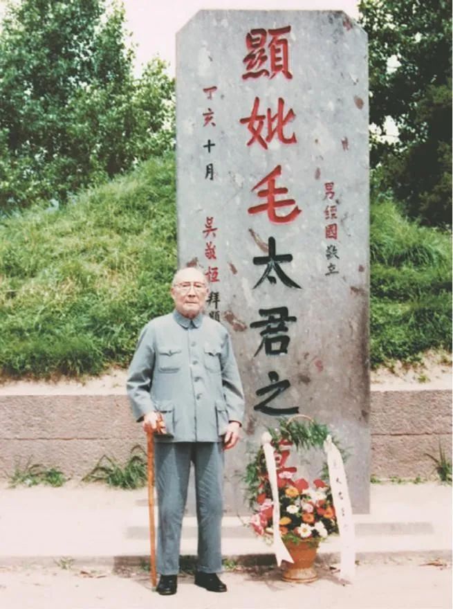 这张照片拍摄于1987年6月,屈武此时已是89岁高龄。他顶着炎炎烈日,在浙江奉化溪口徒步登山,到蒋经国生母毛氏墓前敬献花圈、行三鞠躬之礼,为蒋经国弥补了无法亲临溪口为母亲扫墓的遗憾。