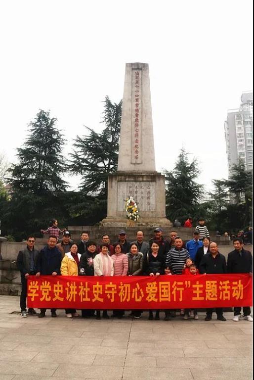 随后,到达抗日英雄纪念碑,墓园庄严肃穆,全体社员聚集在英雄纪念碑,向英烈们鞠躬致敬。高高耸立的纪念碑,象征着抗日英雄们奋勇抗战、为国捐躯的崇高精神。“已表精忠光日月,长留浩气在人间”,烈士们不惧强敌、勇赴国难的精神深深打动了在场的每一位社员。社员们纷纷表示要以革命先烈为榜样,不忘初心,砥砺前行,强化学习,不断提高政治素质和业务能力,积极发挥民主党派参政议政的职责。作为新时代的九三人,更要坚持“不忘合作初心,继续携手前进”,为实现中华民族伟大复兴的中国梦贡献九三力量。