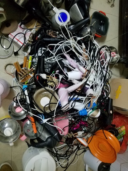 晚上9点30分,逾百名检查组成员在宿管科门口集结,随即按照既定计划分组深入到全校各个学生宿舍,重点检查学生的安全用电情况以及有无私藏违禁品的行为。各个检查小组逐栋逐层逐间的进行检查,对学生私拉乱接电源插座、违规使用电器、随意乱动消防设施、在室内吸烟等违规行为进行了劝诫批评,对检查中发现的问题进行了记录,并将寝室中的大功率电器和违禁物品当场查处没收。